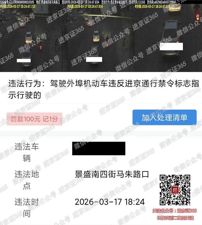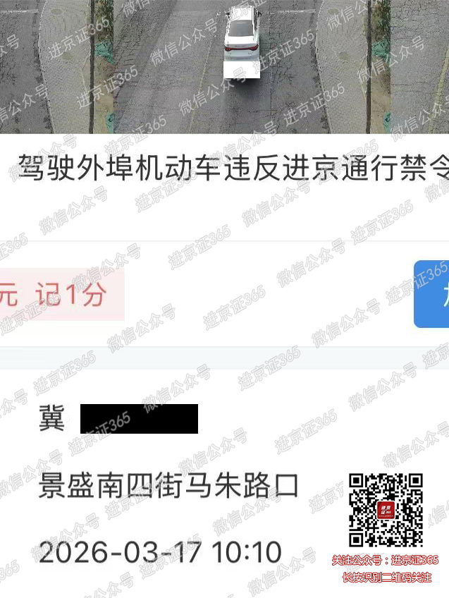 2026.3.17晚上5点40北向南拍六环内进京证,办理六环外被拍