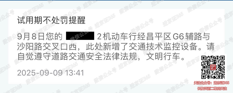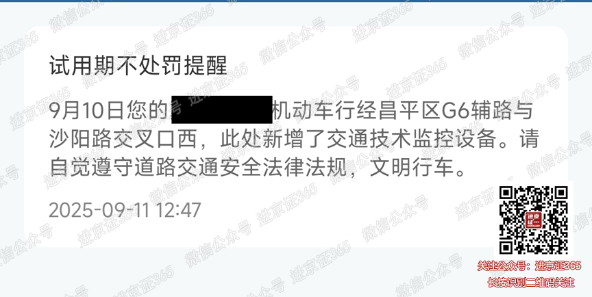 【北京交警】9月14日您的xxxxxx机动车行经昌平区G6辅路与沙阳路交叉口西,此处新增了交通技术监控设备。请自觉遵守道路交通安全法律法规,文明行车。【北京交警】 走旁边的非机动车道右转都不行 这条路彻底死了