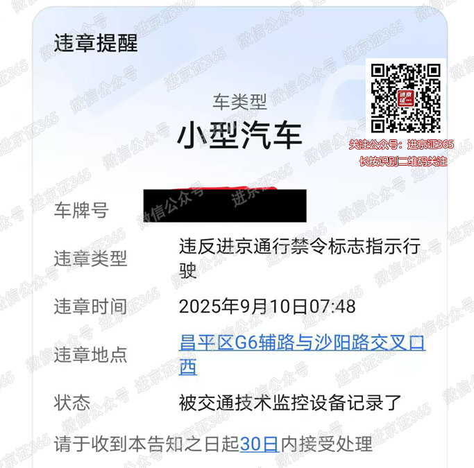 已收到警告短信,走车时间是9月14日
