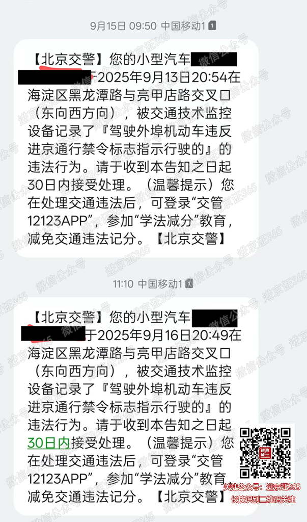 提醒:通州区全区域、延庆区部分区域需要六环内进京证。